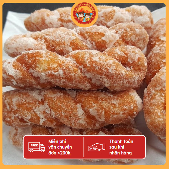 Đây là bánh quẩy ngọt dạng xoắn, được chiên vàng rồi phủ lớp đường trắng bên ngoài.